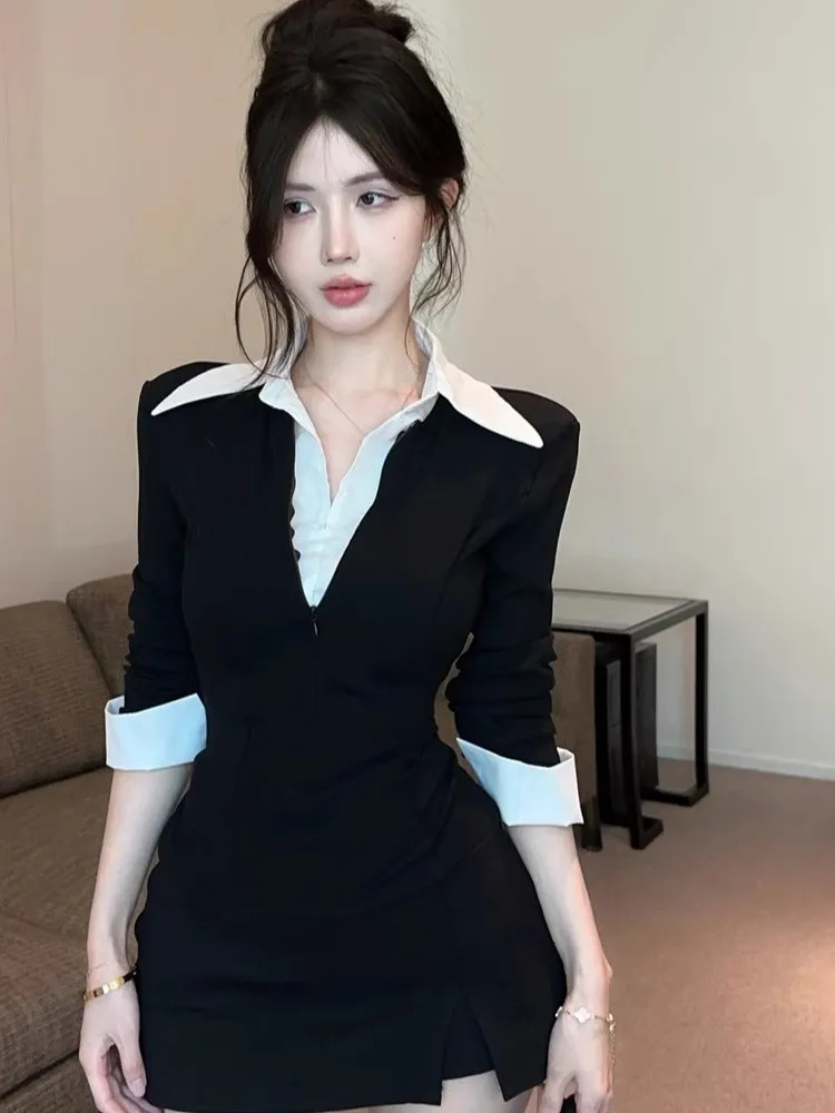 섹시한 폴로 칼라 셔츠 여성 봄 패션 순수한 매력 매혹적인 브이넥 탑 독특하고 우아한 대학 스타일 긴팔 캐주얼 셔츠