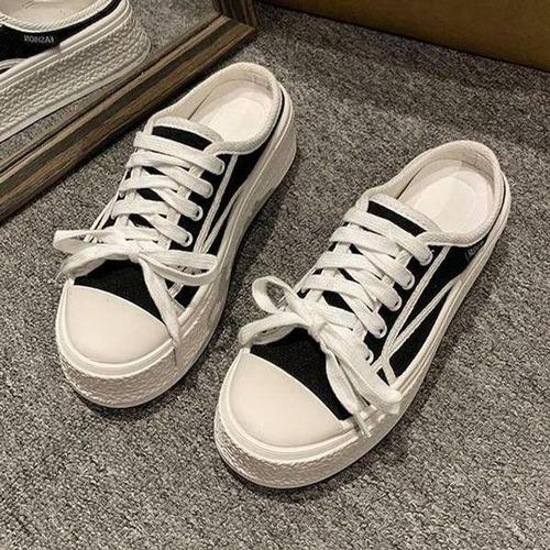 [셀러허브_여성트랜드패션]ONM 빈티지한 통굽 끈 스니커즈화 LK B7 뮬스니커