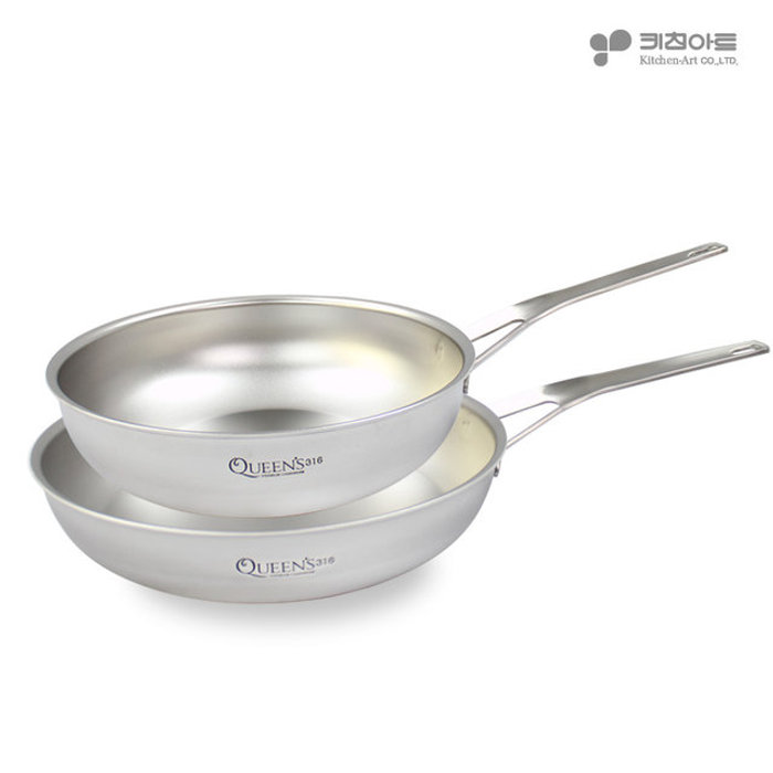 키친아트 키친아트 퀸즈 통5중 무연마제 IH 인덕션가능 스텐레스316 후라이팬세트 2종(후28+궁26)