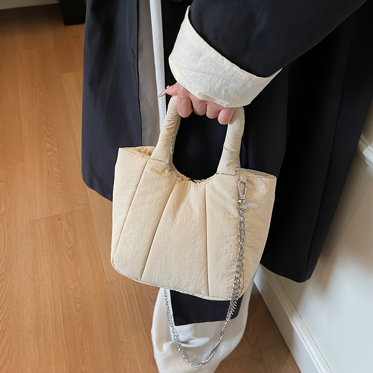 TEMU 1 스타일리시 여성용 다운 숄더 백, 퀼트 크로스바디 백 - 부드러운 패딩 숄더 스트랩, 대용량 수납공간, 내구성 있는 소재, 안전한 지퍼 클로저, 카키, 그린, 블랙 색상 - 사계절 사용 가능, 일상 및 비즈니스에 적합한 핸드백