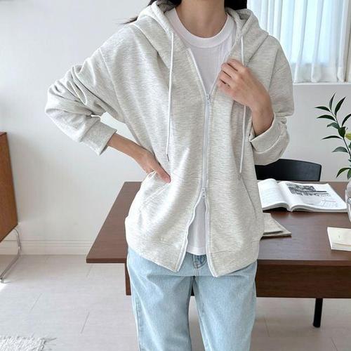 레이디 노멀 필수 재킷 심플무난 스탠다드 투웨이집업 후드자켓