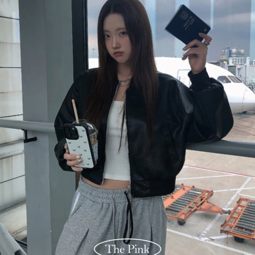 더핑크 / 바일 스트랩 투웨이 레더 블루종 크롭 자켓