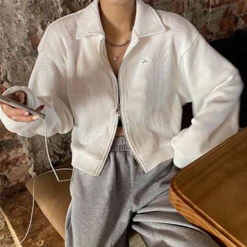 후암마켓 여성 루즈핏 하이넥 투웨이 세미 크롭 집업 라인 트레이닝 자켓