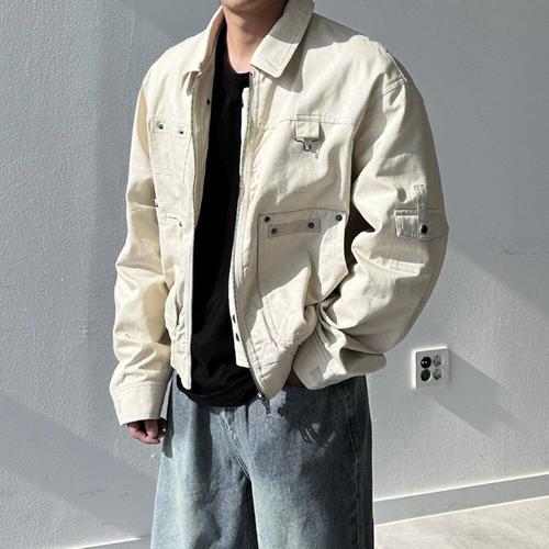[클라쓰업]더블 남자 루즈 오버핏 코튼 크롭 투웨이 지퍼 자켓