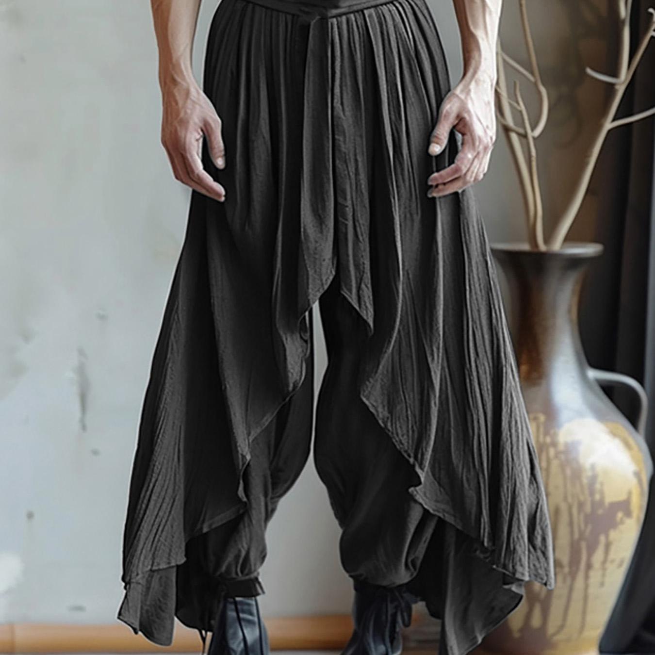 TEMU 남성용 캐주얼 솔리드 레이어드 배기 바지, 탄성 허리, 데일리 야외 활동 및 힙피 스타일에 적합