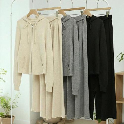 밴널스샵 여성 긴팔세트 봄가을 빅사이즈 트레이닝복 세트 후드 아우터 일자 와이드 바지 투피스 와인 HO3