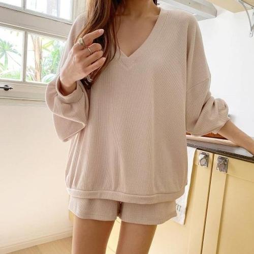 [신상오픈런]|KMD23BC|빅사이즈 브이넥 긴팔롱티 반바지 티셔츠 투피스_20170018_597559