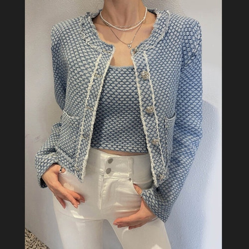 여자 봄 가을 면접복장 여성 투피스 사무실 숙녀 신제품 트위드 정장 재킷 하이 웨이스트 반바지 세트 작업