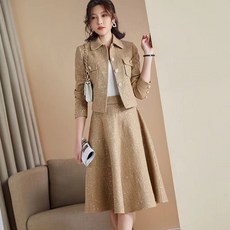 쩐쿠 봄 여성 카라넥 트위드 자켓 모직 스커트 투피스 9283