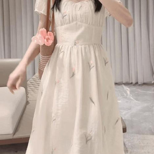뉴욕멋쟁이 튤립 스퀘어넥 플라워 미디원피스