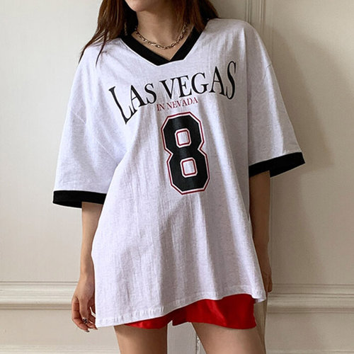 나야홍 / 빅사이즈 508 갸름브이넥숫자티셔츠 DBUV068