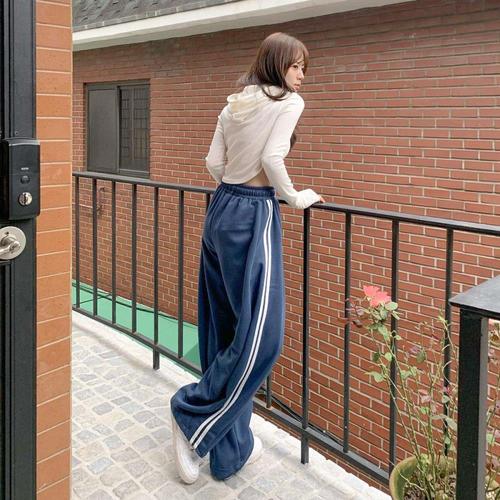 Asure 여성바지 스트라이 트레이닝바지 루즈핏 와이드 팬츠