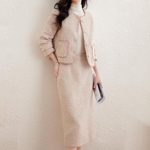 여성 소향풍 세트 캐주얼 봄 가을 긴팔 트위드 자켓 + 하이웨이스트 H라인 롱 스커트 상하의 투피스 기질 소향풍 트위드 투피스 세트 MJS
