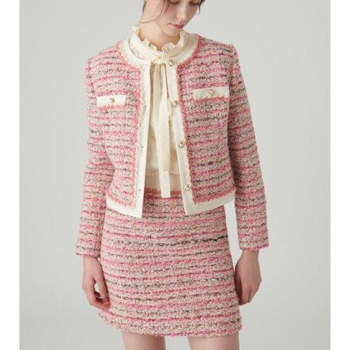 투피스 세트 트위드 여성 자켓 미니 스커트 정장 셋업