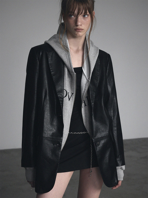 오버핏 카라 블루종 레더 자켓 (DP1JK013A)