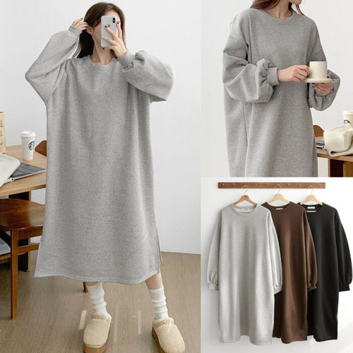 [옷자락]여자 빅사이즈 겨울기모 포켓 밑트임 임부복 롱원피스