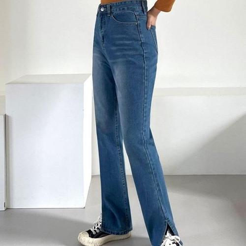 [하프클럽/]여성 옆면 캐쥬얼 나팔 트임 와이드핏 청바지