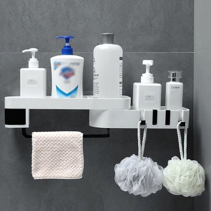 욕실 틈새 공간 활용 부착식 걸이 코너 선반 그레이
