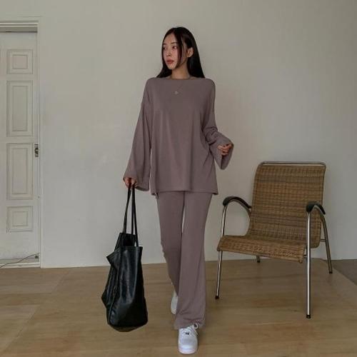[다잇템][다잇템] 여자 고무줄 바지 레이온 편한 롱슬리브티 나팔 드레스업 세트_23517726_588872