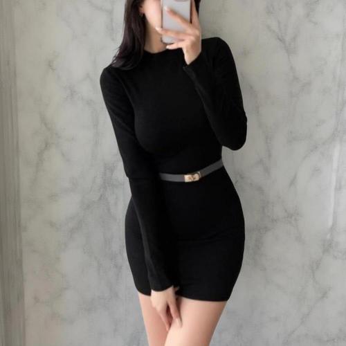 [다잇템]여성 슬림핏 쁘띠 긴팔티 베이직 폴라넥 드레스