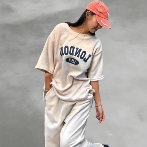 [다잇템][다잇템] 여성 나염 보온 팬츠 플리스 티셔츠 조거 반소매 옆슬릿 세트_23909409_588872