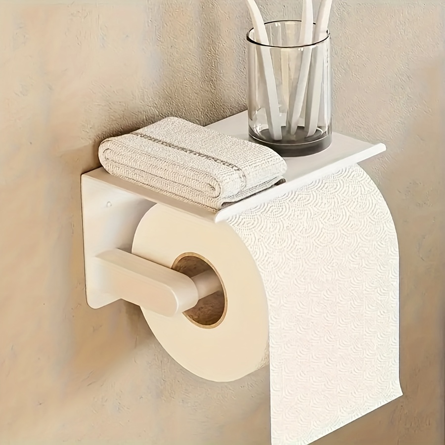 TEMU 1개 헤비듀티 욕실 화장지 홀더 (상단 선반 포함) - 무드릴 접착식 또는 드릴 장착, 공간 절약형 정리대, 화이트 및 추가 색상 선택 가능, 세련된 페인트 마감, 견고한 구조|화장실선반|화장지