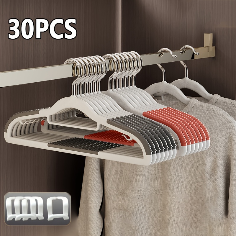 TEMU 30개 세트 미끄럼 방지 플라스틱 옷걸이 + 커넥터, 내구성 있는 회전 후크 - 봄/여름 의류 보관 및 정리용, 침실, 욕실, 가정용