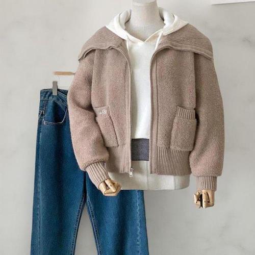 [옷자락] 여성 따뜻한 파스텔톤 부클 세일러 카라 시보리 가디건