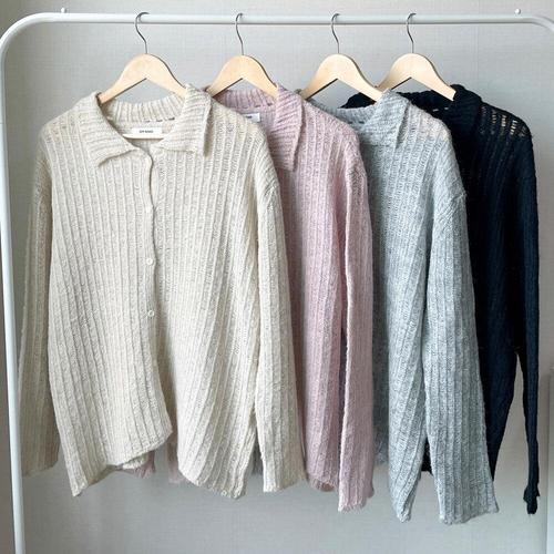 [신상오픈런]여성 여리핏 파스텔 색상 카라넥 골지 버튼 울 니트 가디건