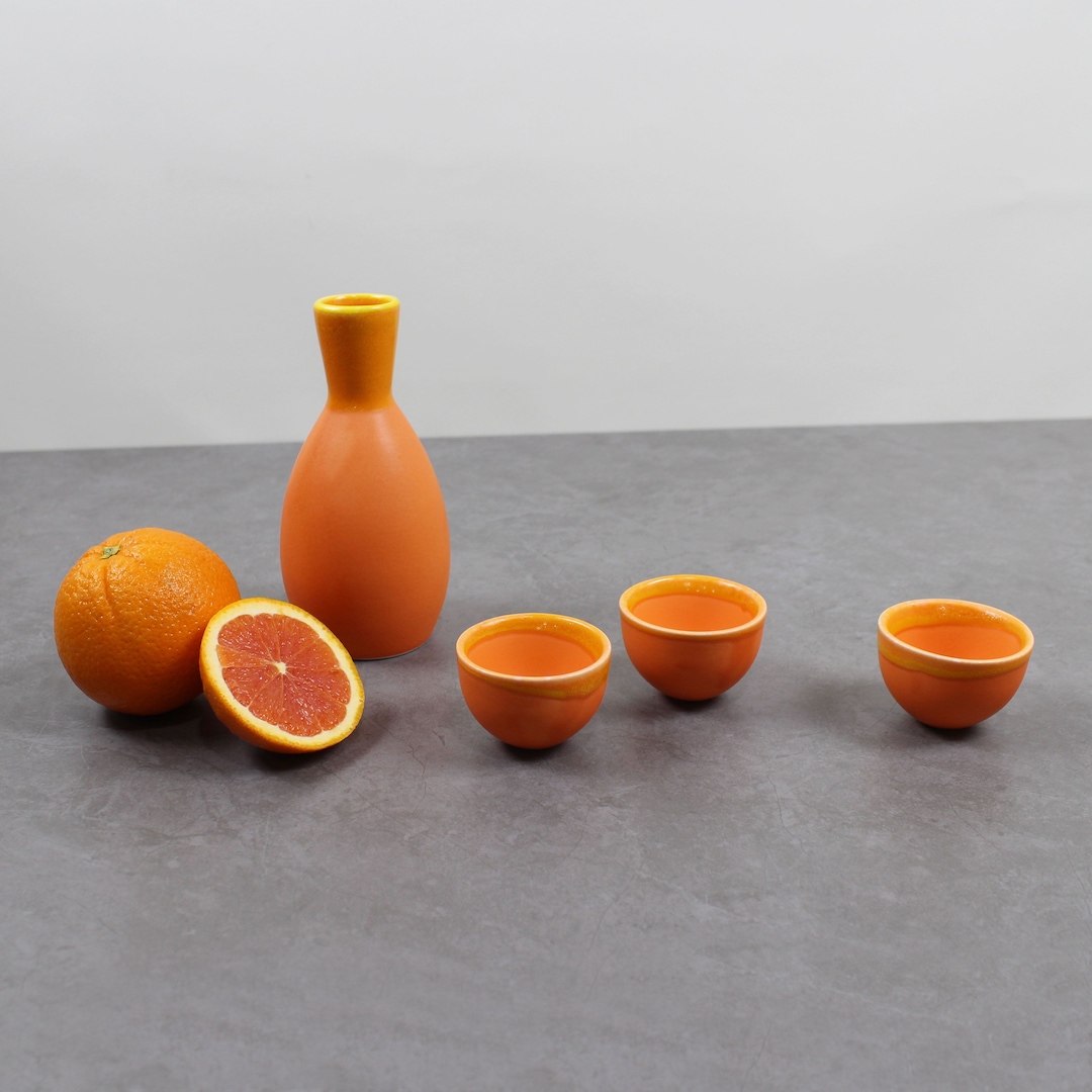 도자기 술병 소주잔 선물 오렌지 도쿠리세트(4P)