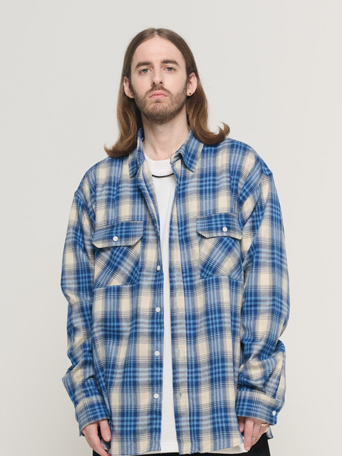 [카고브로스] POCKET FLANNEL OVER CHECK SHIRT (BLUE)
