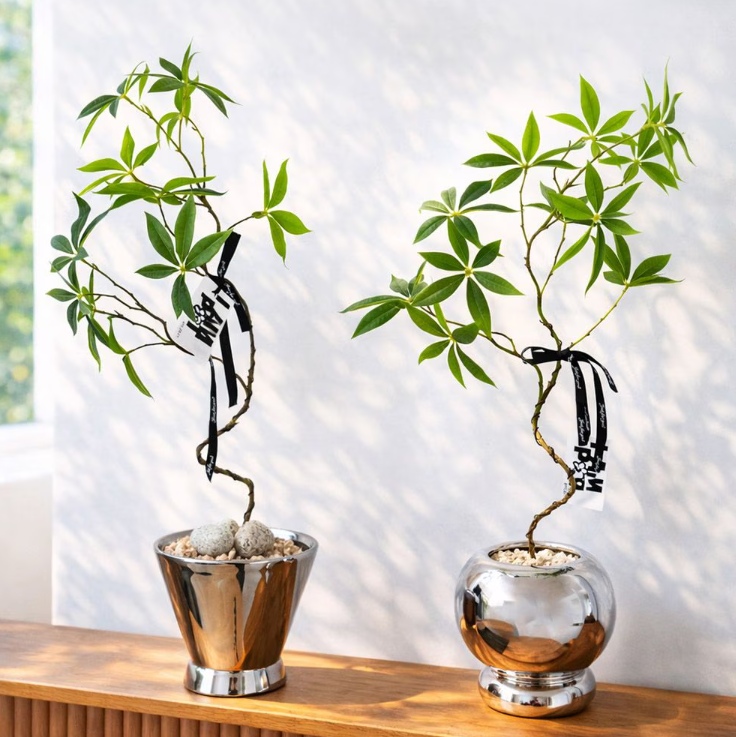그린 파키라 조화 실버 화분 (블랙/실버)