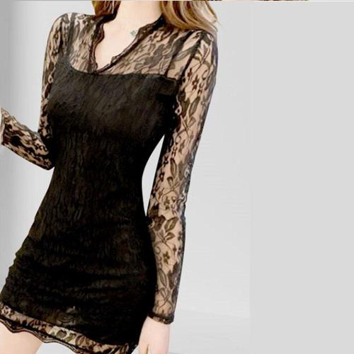레이스 슬림핏 파티 미니원피스 긴팔 데이트룩 원피스 WFLRZCN