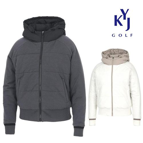 [김영주골프]겨울 니트 배색 패딩 후드집업 여성 방한 골프 점퍼 DPWLJP07