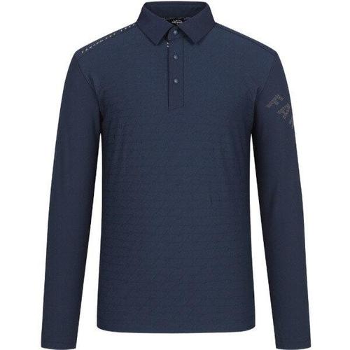 팬텀골프 211D3TO801 남성 로고 자수 잔 스트라이프 카라 긴팔티셔츠