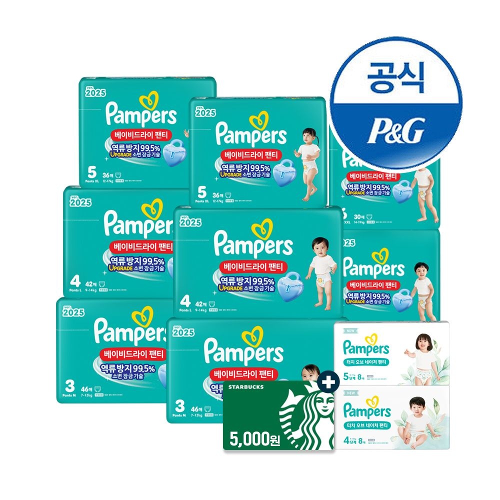 2025 베이비드라이 팬티 5단계 36매 X8팩 팸퍼스 아기 기저귀
