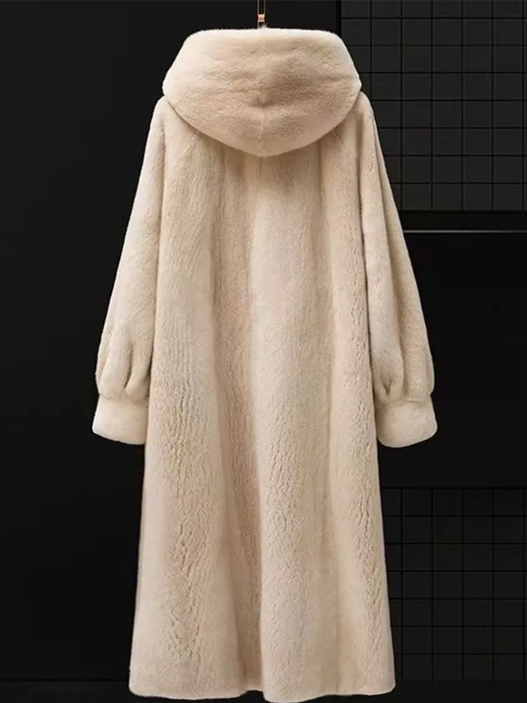 친환경 퍼 및 가죽 통합 코트 여성용 중간 길이 후드 가디건 스타일 보온성 폴리에스터 섬유 긴팔