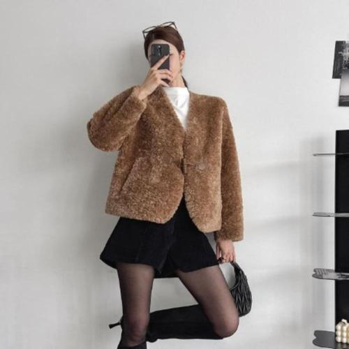 [옷자락] 여성 퍼버튼 브이넥 가디건 자켓