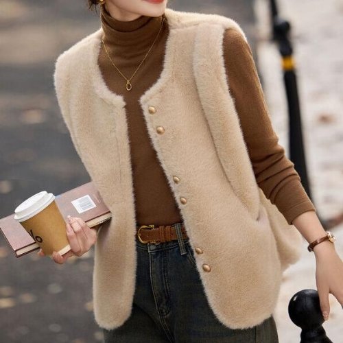 [패션시그널] 유니크 퍼 조끼 가디건 FD532E