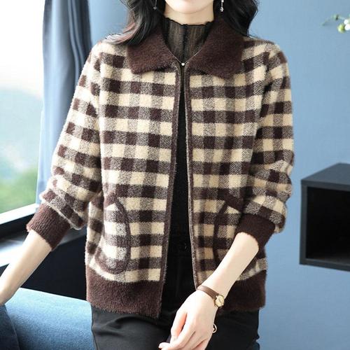 [까르죠아]포근한 체크 자켓 엄마옷 중년여성 여자 겨울 가디건 퍼코트