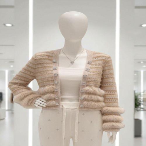 짧은 스웨터 가디건 퓨어 데지어 스타일 여성용 겨울 퍼 니트 튜브탑 베스트탑 투피스 세트 패셔너블 앙상블