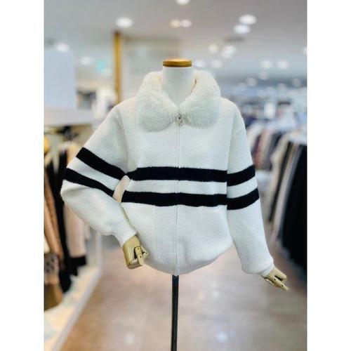 [GGPX] 시크 페이크 퍼 배색 골지 집업 니트 가디건 (GPBKG031F)