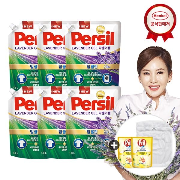 퍼실 딥클린 라벤더 1.8Lx6개 세탁세제 겸용_프릴 300ml 2개+세탁망