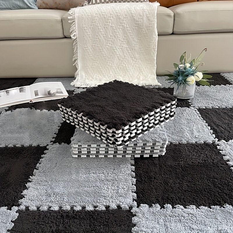 TEMU 24개 조립식 바닥 퍼즐 - 블랙 & 화이트 체커보드 매트 타일, 간편한 클릭 설치, 미끄럼 방지 백킹 - 거실/사무실/기숙사용 부드러운 표면 (2.+ & +) - EVA/폴리에스터 바닥매트, 대형 커버리지, 모던 디자인, 내구성 있는 소재, 폼 퍼즐, 사무실 인테리어