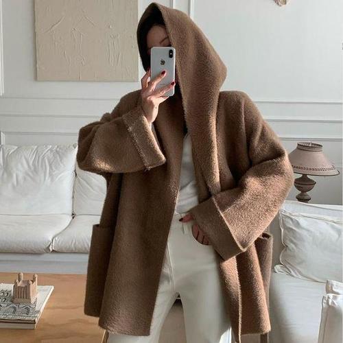 [하프클럽/옷자락]여자 후드코트 박시핏 벨티드 망토 겨울 퍼 하프 코트