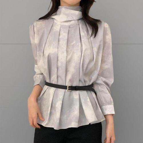 [신상오픈런]여성 하객 패션 플리츠 물감 염색 롱 슬리브 퍼프 블라우스