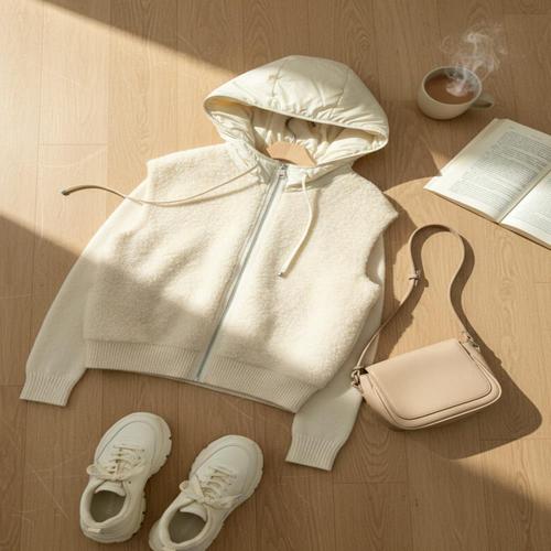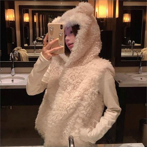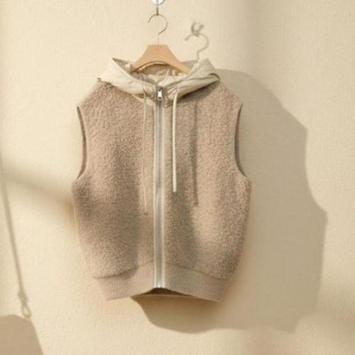 [신상오픈런]여성용 후드 스트링 퍼 베스트 캐주얼 뽀글이 디자인