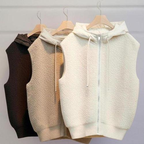[옷자락]여성용 캐주얼 퍼 후드 집업 베스트