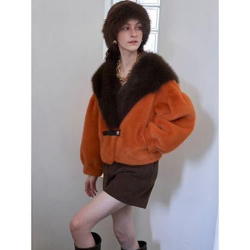 [르니앤맥코이]숄카라 배색 소프트 페이크 퍼 자켓