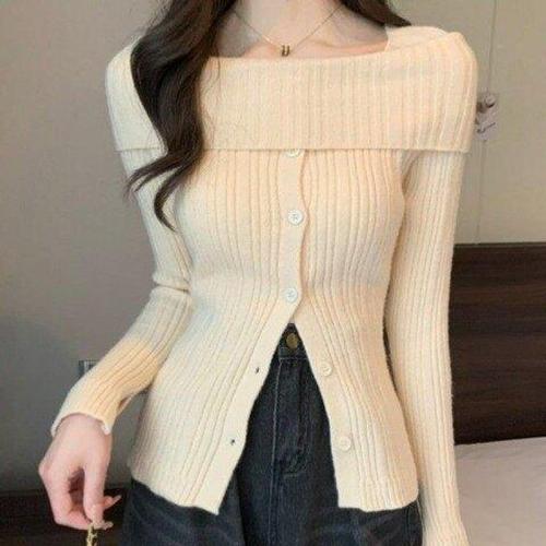 TEMU 가을 오프숄더 섹시한 탑, 세련된 레트로 퓨어디자인 스타일의 긴팔 풀오버, 레이어링용품, 파티룩, 오프숄더 디자인, 비대칭 스타일, 경량성 있는 풀로버, 부드러운 질감, 스타일리쉬 블라우스, 핏팅 니트웨어, 패션 애호가 및 레트로 매니아를 위한|여름블라우스